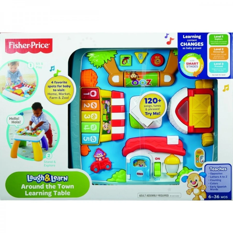Hola! Babies aged 6-36 months can explore every corner of this table and learn about the numbers, letters and basic phrases in English and Spanish. There are 4 fun places to visit: the zoo, farm, market, and Puppy’s home. Each spot has different buttons, lights, sliders and doors for interactive play. Press the buttons to play over 120 sounds, songs, and phrases. This learning table is also equipped with Smart Stages Technology to maximize the fun learning experience. With this technology, there are 3 levels to choose from: explore, encourage and pretend. You will find a slide switch on the table where you can set the level that’s best for your baby’s skills. Bonus: role-playing will be more exciting as your baby learns to use the phone located in the middle of the table. Fun sounds and phrases will play with the press of the green phone button. The package also includes attachable legs for the table that you can use when your baby is ready to stand or walk.