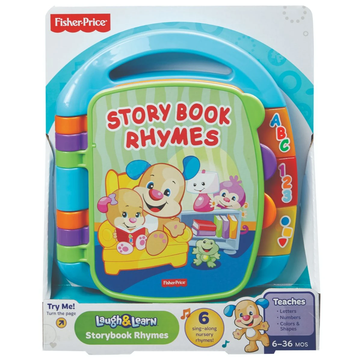 The Fisher-Price Laugh & Learn Storybook Rhymes Book is specially curated for babies and toddlers. The item is recommended and enjoyed most by the age group of 6 months to 3 years. With the help of famous Laugh & Learn characters like Puppy and Sis, it enables learning in a super-fun mode. It is equipped with 6 inbuilt sing-along nursery rhymes-all childhood favourites such as Pat-a-Cake, Itsy Bitsy Spider, Hickory Dickory Dock and others. Each rhyme is on a page easy enough to flip by themselves, encouraging developing excellent motor skills as they learn. It has a volume button and 3 big, colourful light-up buttons for introducing the tiny tots to numbers, shapes and the alphabet. It also features a top handle with a firm grip, meaning the child can carry it along with ease. The toy has a visible On/Off switch and requires 2 AA batteries.