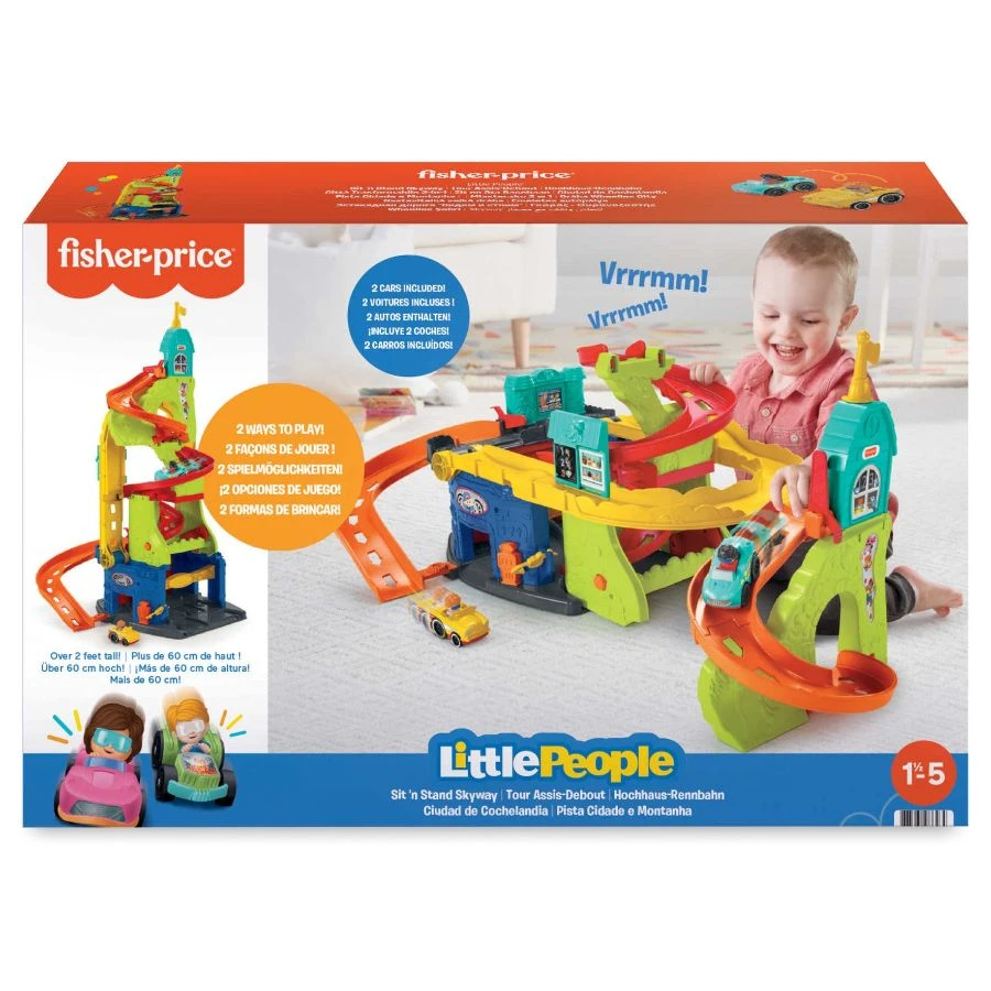Create a town out of the Little People Sit ‘n Stand Skyway playset so those little ones may run errands like their parents, drive the Wheelie’s cars through the car wash, and fill up at the gas station. Even better, they can raise the gates to send their vehicles hurtling down the ramps. Increase the enjoyment by converting it into a Skyway! When this playset is converted into a Skyway, the zip-zooming excitement soars to unprecedented heights (over 34 inches) with a little assistance from an adult! Children may now position the Wheelies cars at the top and let them race down the spiral ramps, speeding up as they travel around and around. At first, young drivers will just roll the Wheelies cars along or let each one fly down the ramps as they explore the town. Soon enough, they’ll learn that turning the town into a Skyway and back again can change the fun (with a little assistance from a parent)! As kids become older, you’ll notice that they begin to play pretend while setting up their own driving experiences.