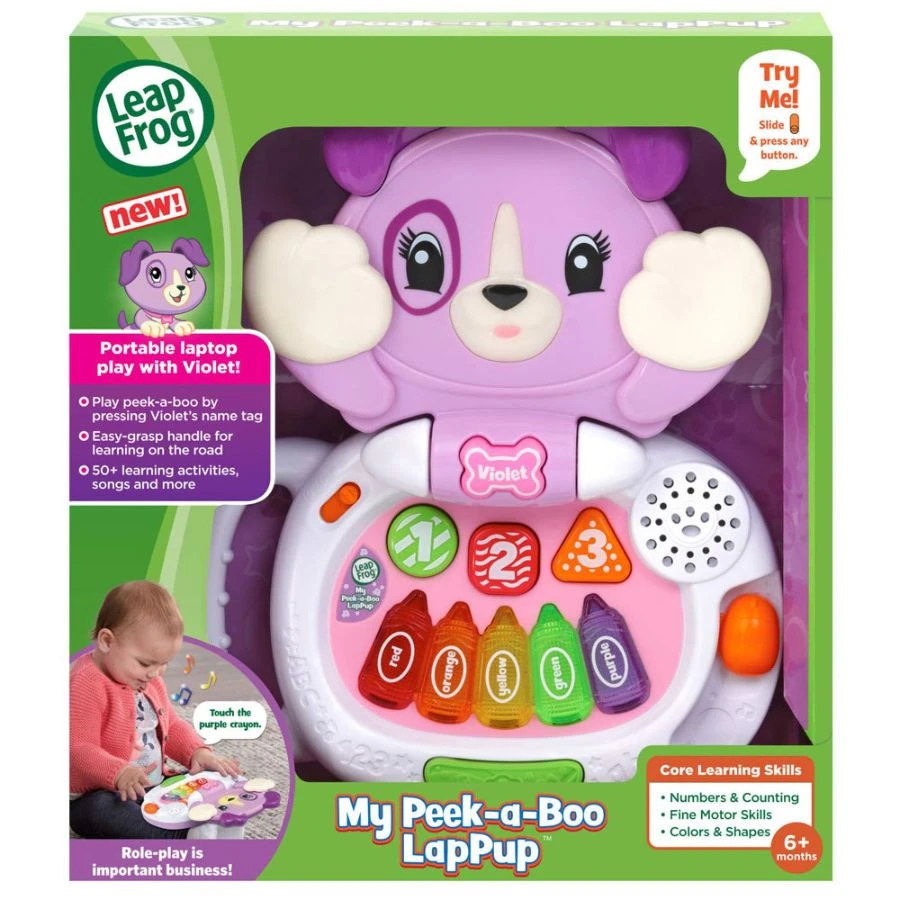 The Peek, a Boo LapPup from Leapfrog, is a toy for small children who are beginning to develop motor skills and learn the alphabet and numbers. This violet coloured pup is called ‘Violet’, and she can play a game of peek a boo with kids when they press her nametag button. Once you press the button, Violet covers her eyes and says peek a boo phrases. The toy also has 5 buttons in 5 different colours shaped like crayons. When you press these buttons, children can hear the name of the crayon’s colour, or other phrases and songs. There are three other buttons in different shapes – circle, square, and triangle which trigger rhymes about shapes, colours, and numbers. Whenever Violet talks, her mouth lights up, creating an attraction for small kids. This colourful toy is recommended for children between the age of 6 months and 24 months. The toy is made of plastic, and it requires 3 AAA batteries, included for demo purposes only. You may have to replace the batteries for regular use. It measures approximately 6.5cm x 20.4cm x 25cm.