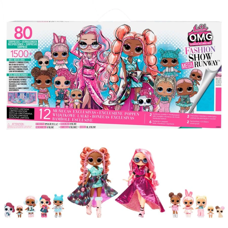 Surprise after surprise, unbox 80 surprises, including 12 exclusive dolls, to create more than 1500 looks! Have a blast while staging the most intense fashion show ever. The value is above $200! Includes 12 exclusive Dolls Two OMG fashion dolls with interchangeable costumes, six LOL Surprise dolls, two pets, and two Lil Sisters are all in one package, together with stickers, sophisticated clothing, intricate accessories, and infinite amounts of fun! Four play areas for a complete behind-the-scenes play experience, open the LOL Surprise OMG Fashion Show Mega Runway to reveal four different play locations! Get your crew ready backstage, perfect your stunning looks at the Makeup Station, and then walk the runway with your boldest outfit! These Fashion Show dolls are fierce and entertaining for fashionistas! Friendship is always in vogue, and they will always support one another in shining bright. Get ready, get set, and pose with the doll stands included with the Mega Runway, which will keep your dolls in position as they fly down the runway.