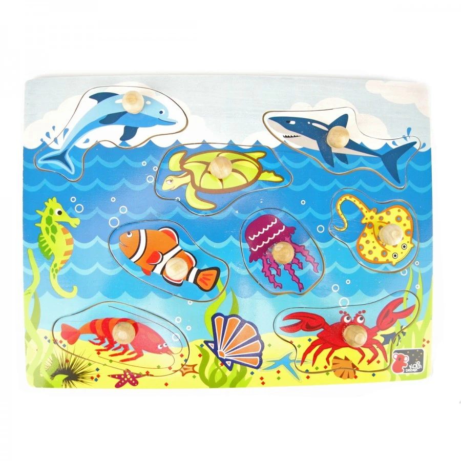Games can be puzzling, but puzzles can be a great game! Get the kids to problem solve and bring the pieces together into a satisfying finish with this tremendous marine-theme puzzle board. An octopus, a seahorse, and a tortoise are just three of the sea creatures in this 7-piece easy-grasp, visually appealing puzzle board. The pieces, each with a full-colour all have a matching picture underneath. The puzzles will provide an early visual start into the wondrous world of sea life to the little ones while stroking their curiosity about the same. They are also a great way to encourage coordination, eye-hand and excellent motor skills in kids. This puzzle board is wooden and is painted with non-toxic, child-friendly colour to make it safe for the kids and great for the environment. This Farm Peg Puzzle makes an ideal gift for kids ages 2 to 4.