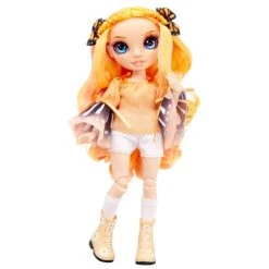 The Rainbow High Junior High girls are a set of creative dolls that have been made on the theme of college-going girls. The names of the six doll girls are Ruby Anderson, Poppy Rowan, Sunny Madison, Jade Hunter, Skyler Bradshaw, and Violet Willow. Every doll is different and has its own sense of style and fashion. For instance, Sunny Madison is all dressed in the colour sunshine and wears yellow and white clothes and accessories. On the other hand, Jade has beautiful green hair, and her clothes and accessories are in the colours green and black. Poppy Rowan flaunts pastel orange, Skyler Bradshaw is all in for the shades of blue, Violet Willow prefers purple, and Ruby Anderson loves the colour red. The dolls have beautiful features – soft hair, large eyes with lovely eyelashes, a comb for their hair, attractive clothes, and several accessories that complement their style. Any random doll may be sent when placing an order. The Rainbow High Junior High Fashion Doll Assortment 1 is recommended for children between 6 and 12.