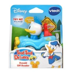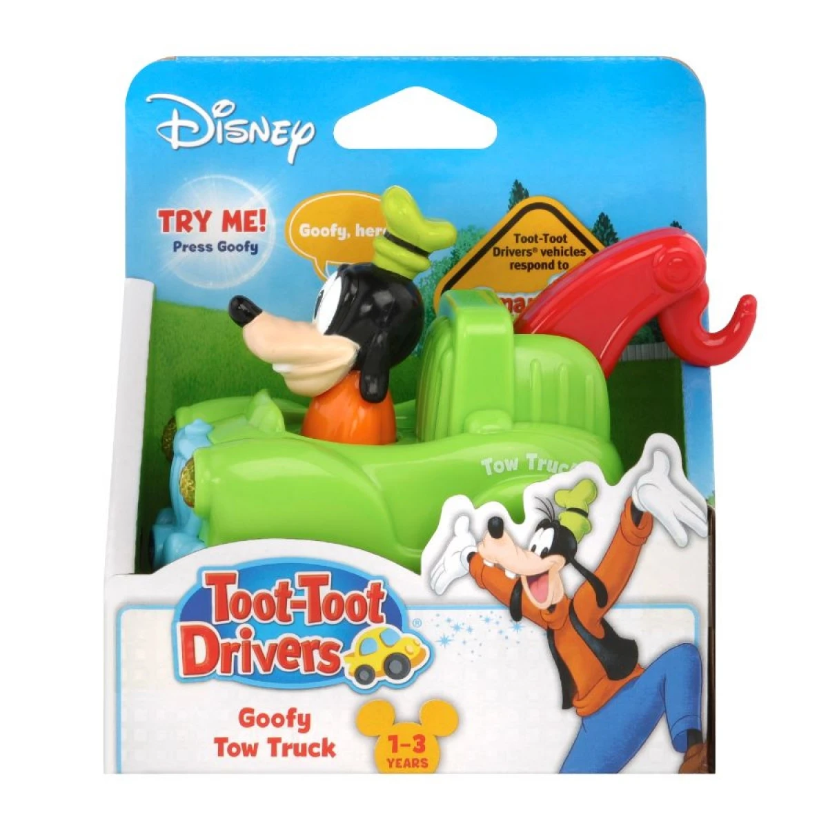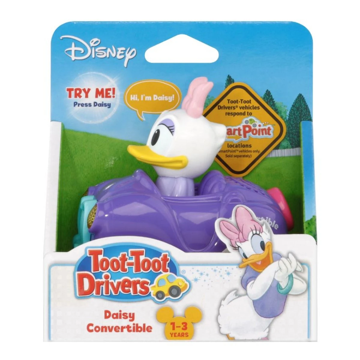 See your favourite Disney characters riding their cute vehicles with VTech Toot-Toot Drivers. There are six vehicles to collect, and there’s Mickey in his red convertible or orange off-roader. Goofy is looking cool in his green tow truck. Daisy is so stylish in her purple convertible. There’s also Donald Duck who is very cute riding his blue off-roader. You can also get Minnie in her pink convertible. These Toot-toot vehicles can be played with all Toot-toot Drivers sets and respond to SmartPoint locations. That is not the only cool feature. When you push the characters down on their seats, you will hear them speak and sing songs. Each vehicle plays three fun songs that children can sing and dance along to. Pushing the characters also turns on the headlights of the vehicles. Check our website for available Toot-toot Drivers Track sets that you can pair up with these Disney vehicles. These toys are recommended for boys and girls aged 1-3 years. All items are sold separately and subject to availability.